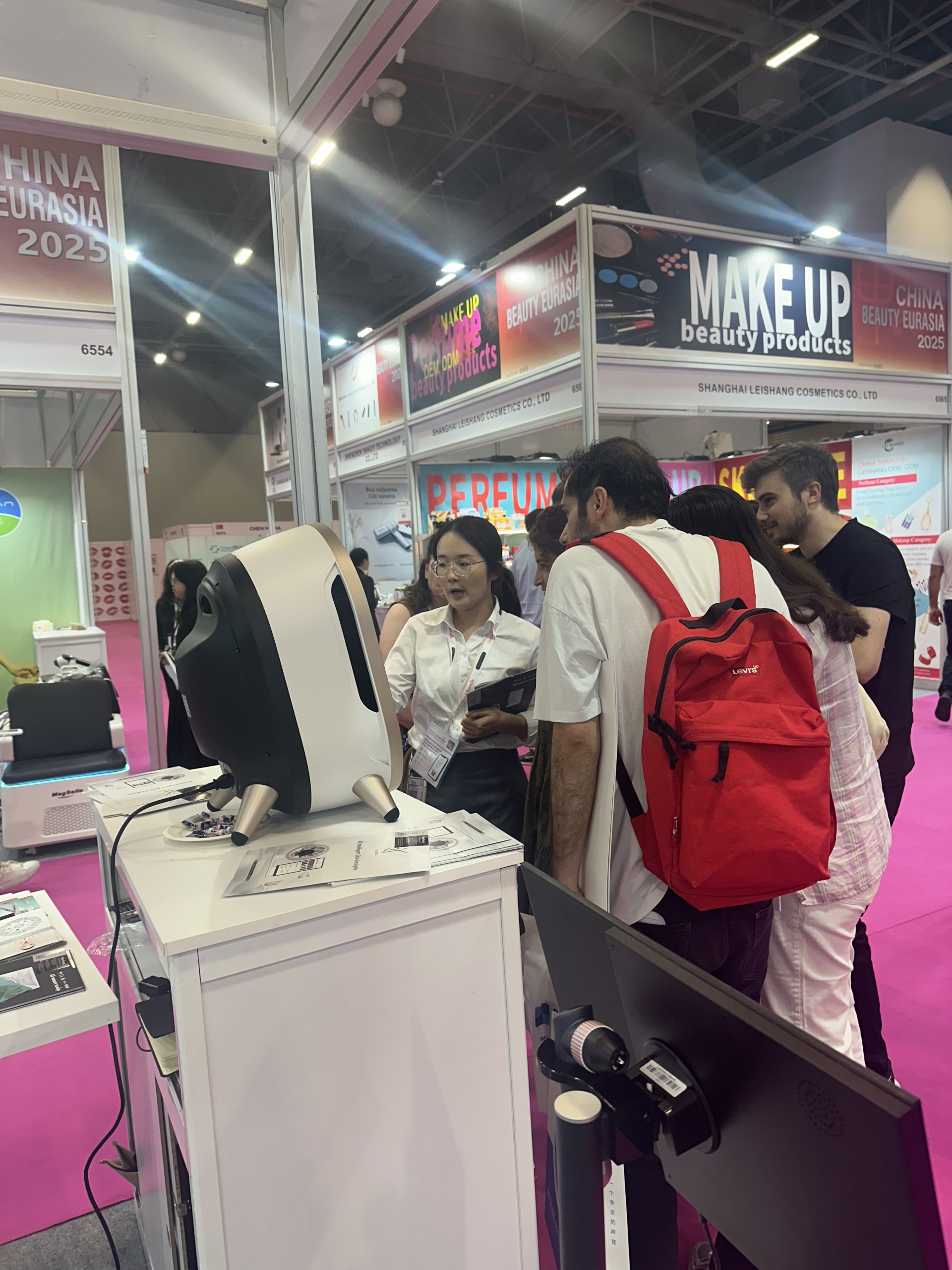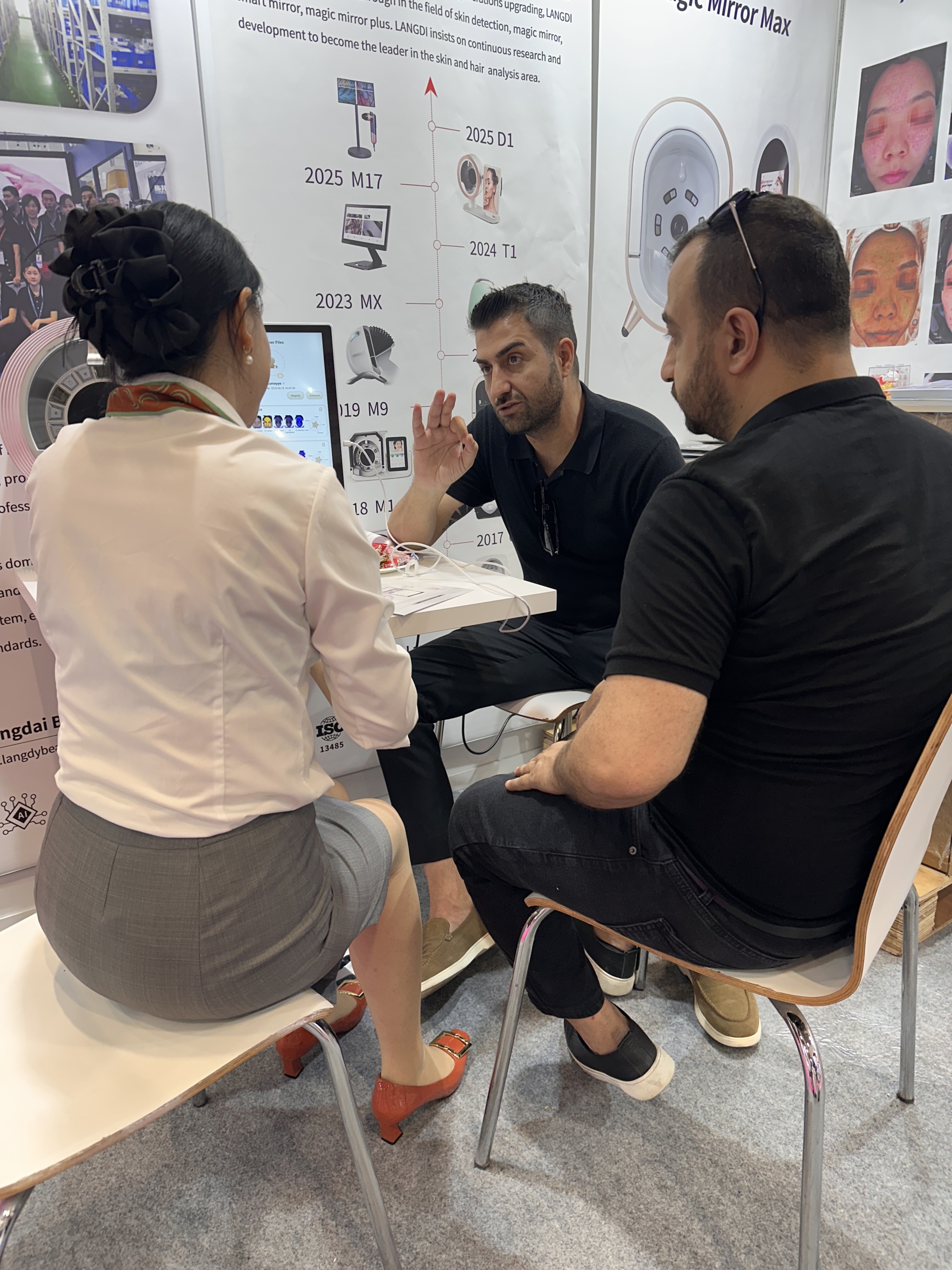 During the exhibition, Langdai’s booth attracted many professional buyers and industry professionals to stop and visit. Beauty salons, hair salons, and agents from Eurasia showed great interest in Langdai’s smart facial camera.